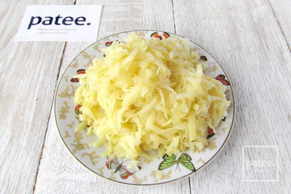 Картофель очищаем от кожуры и натираем на крупной тёрке.