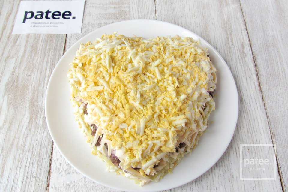 Слой из плавленого сыра также поливаем майонезом и выкладываем слой из натёртых яиц.