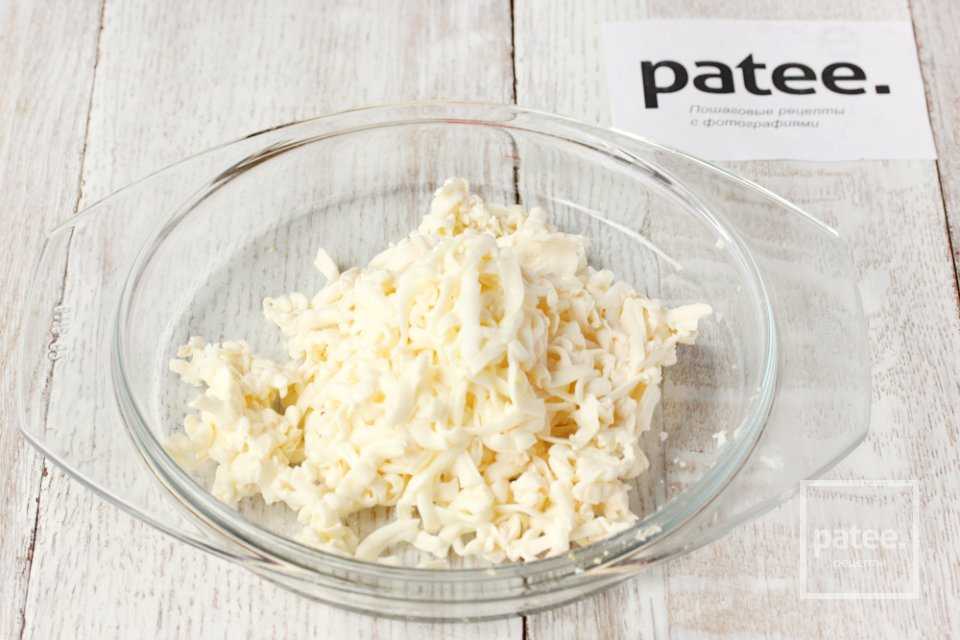 Яйца очищаем от скорлупы и натираем на крупной тёрке.
