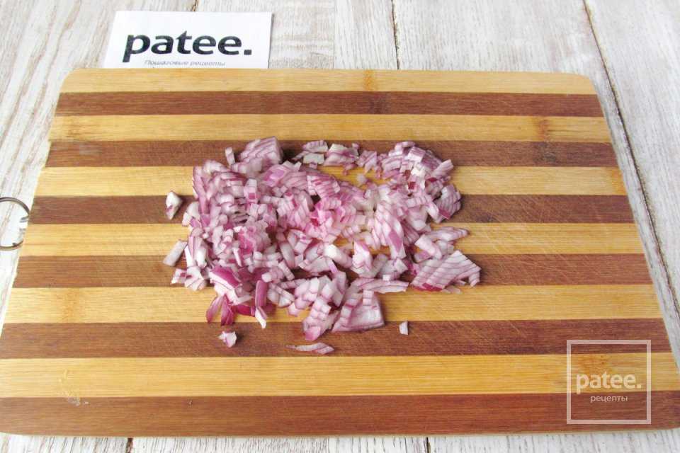Головку репчатого лука необходимо очистить от шелухи, а затем мелко порезать кубиками. Его следует обжарить на растительном масле до золотистого цвета. На этой уходит около 10 минут. Сыр твердого сорта также нужно измельчить. Его можно просто натереть на терку.