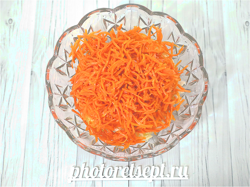 Морковь потрите на крупной терке или тоже порежьте соломкой.