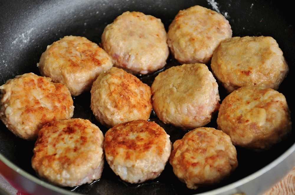 Тефтели следует жарить в глубокой сковородке. Предварительно разогреваем её, и выкладываем тефтели. Поджариваем до образования тонкой румяной корочки.