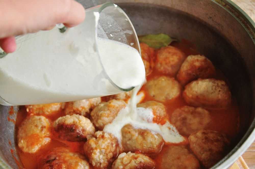 - Подогреть молоко, всыпать муку, взбить. Влить сметану.