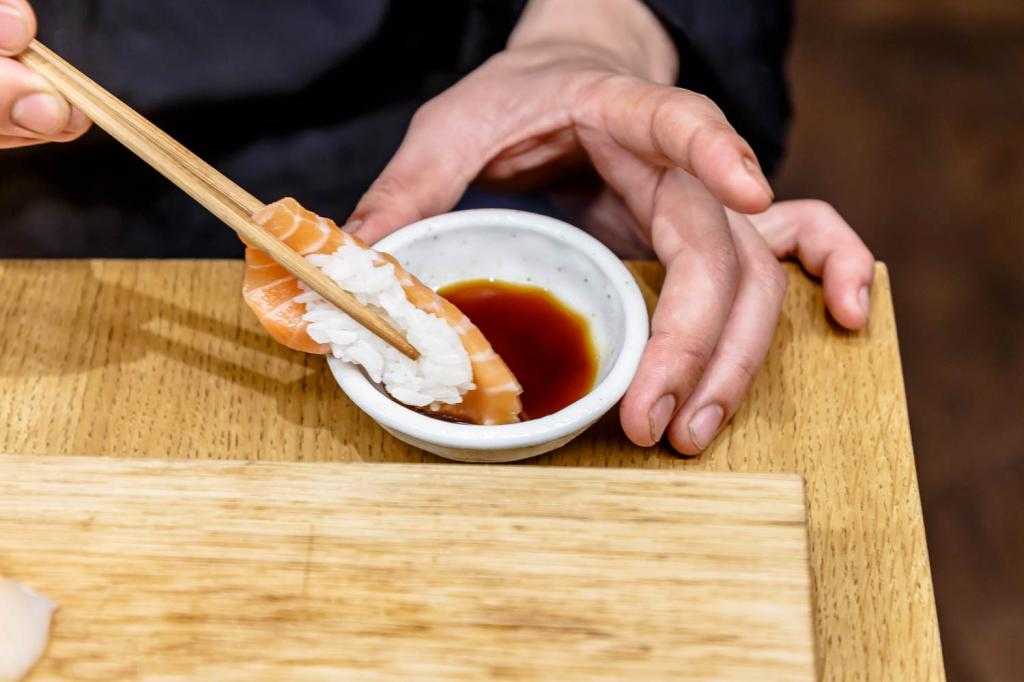 На деле большинство россиян предпочитают макать суши и роллы в соевый соус, даже не подозревая, что это — грубейшая ошибка. Дело в том, что в данной ситуации соус уничтожает естественный вкус риса.