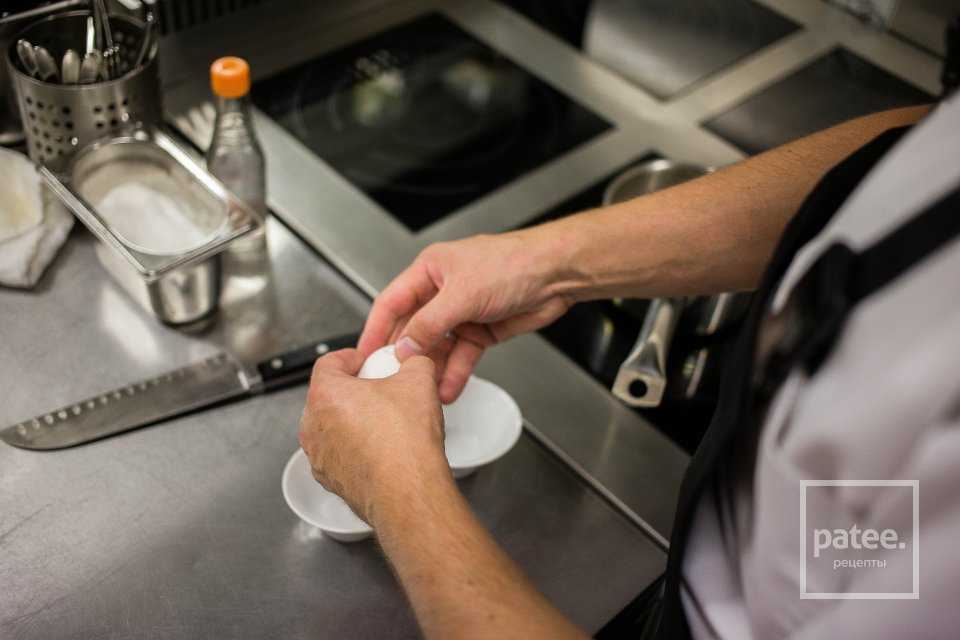 Яйцо должно вариться около минуты. В идеале — 40-50 секунд. За это время оно приобретет именно ту готовность, которая необходима для салата с яйцом пашот.