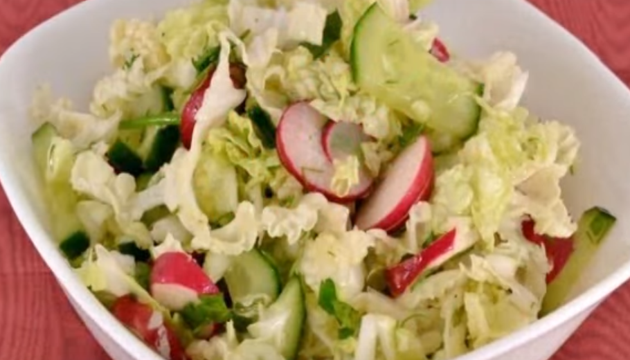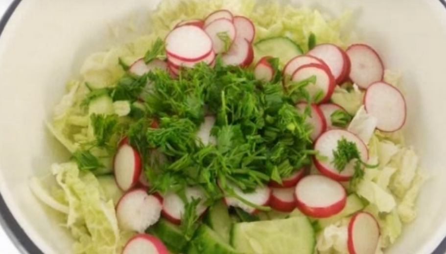 Свежий и хрустящий салат из редиса, капусты и огурцов