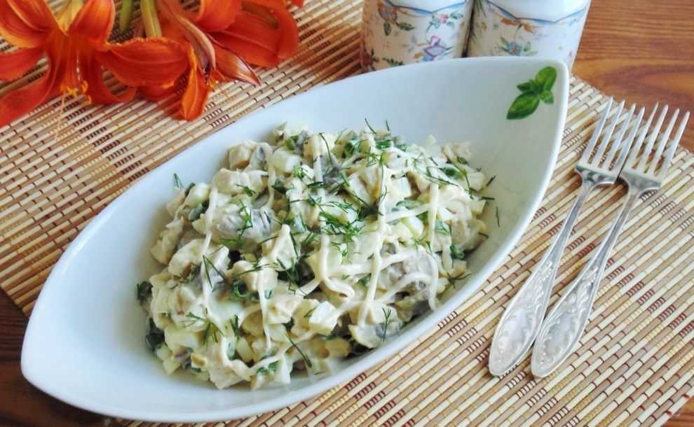 Салат из отварной курицы с маринованными грибами