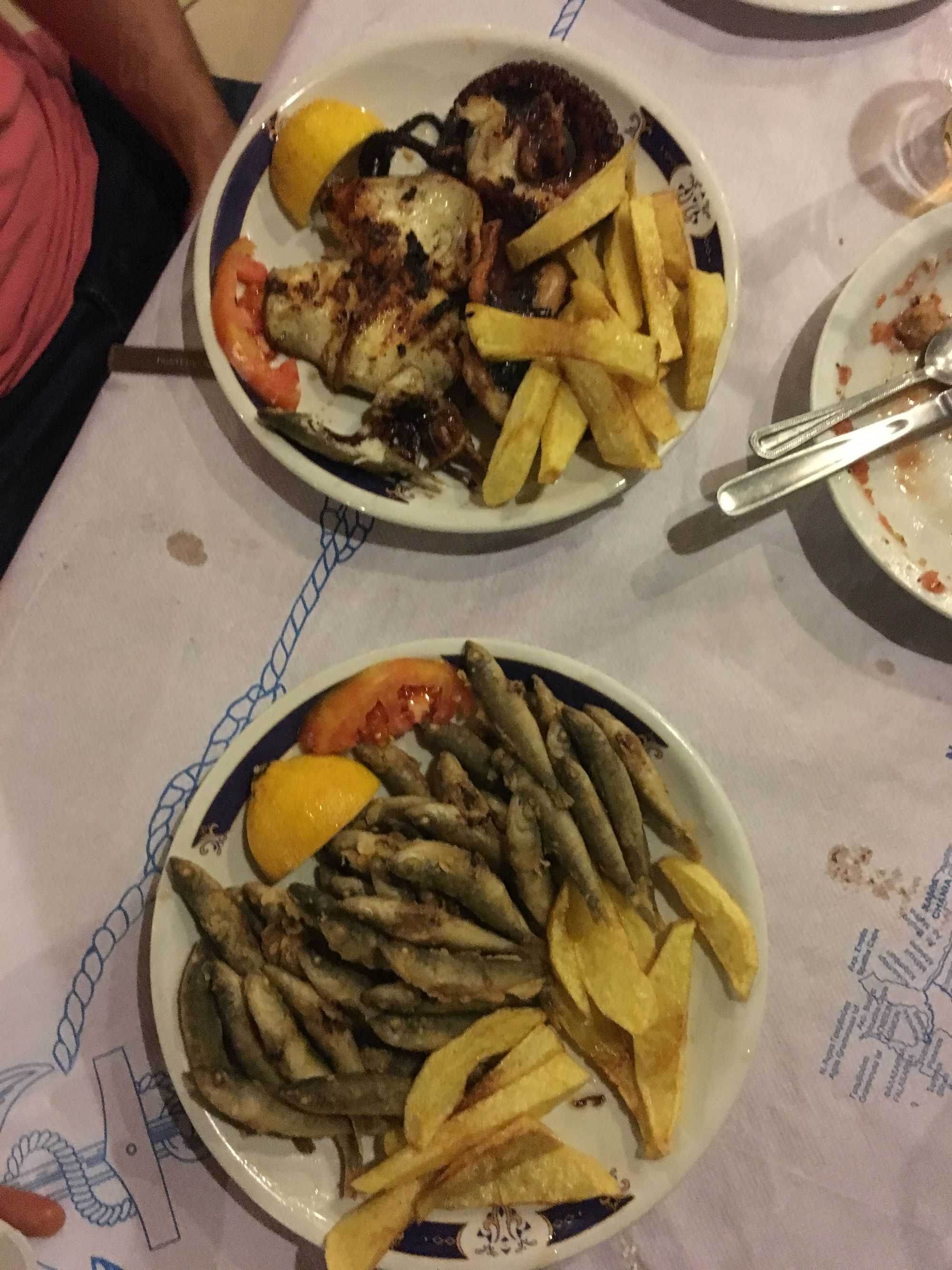 Сардины, осьминог и кальмары в таверне Zorbas, Tsoutsouros