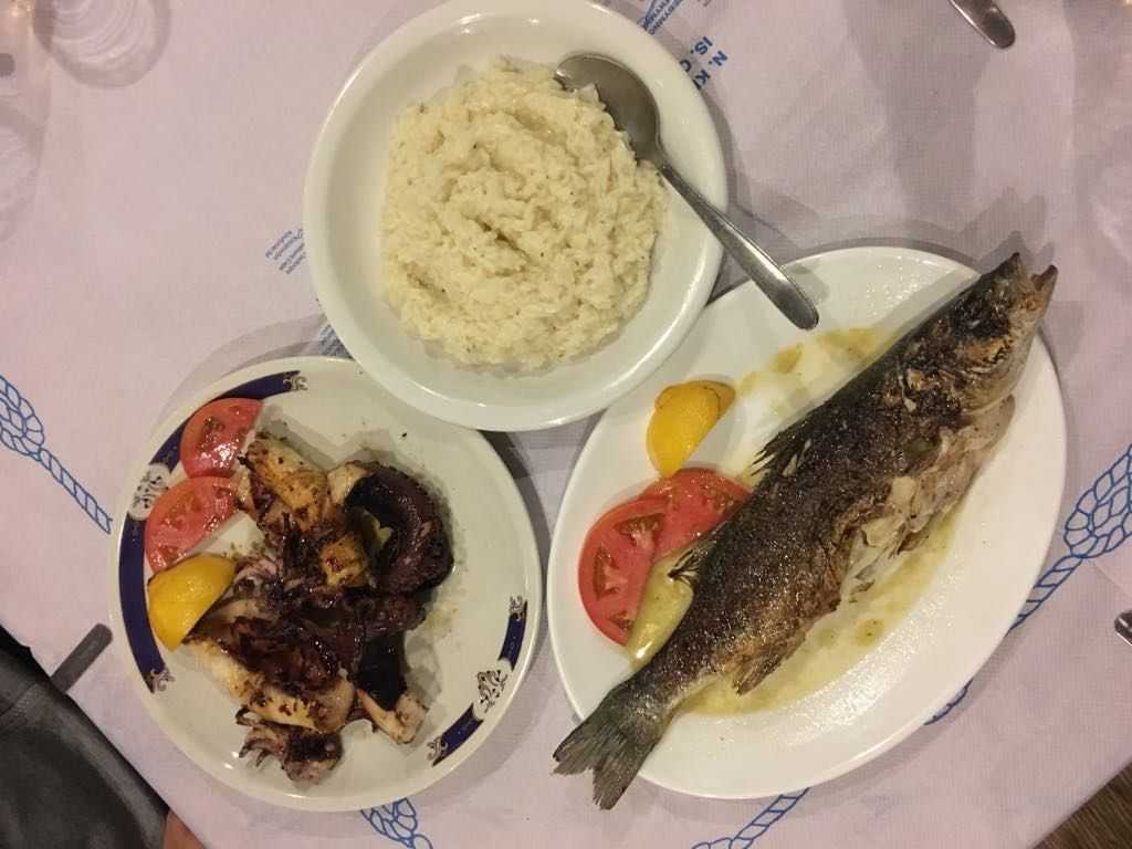 Попробуйте тушенного в вине осьминога, жаренные сардины, дорада.