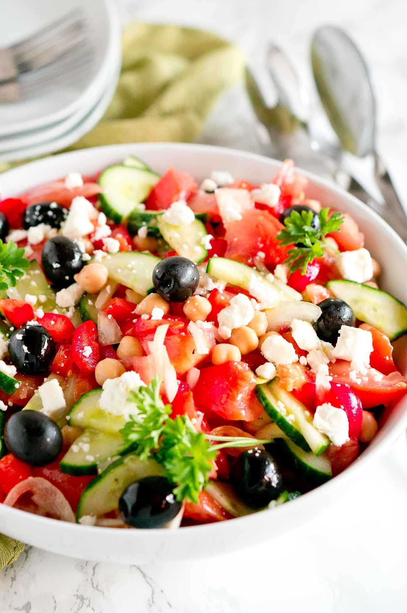 Финально нужно смешать всё, что нашинковано и добавить заправку. Вуаля!