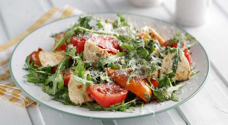 Салат, напоминающий по вкусу классический капрезе благодаря моцарелле, помидорам и уксусу бальзамико. Но печеный сладкий перец, руккола и тертый пармезан делают его принципиально новым блюдом. Такой салат с печеным перцем и моцареллой будет отличном смотреться на любом летнем столе и подойдет под любые шашлыки.