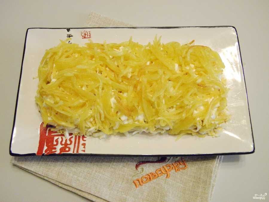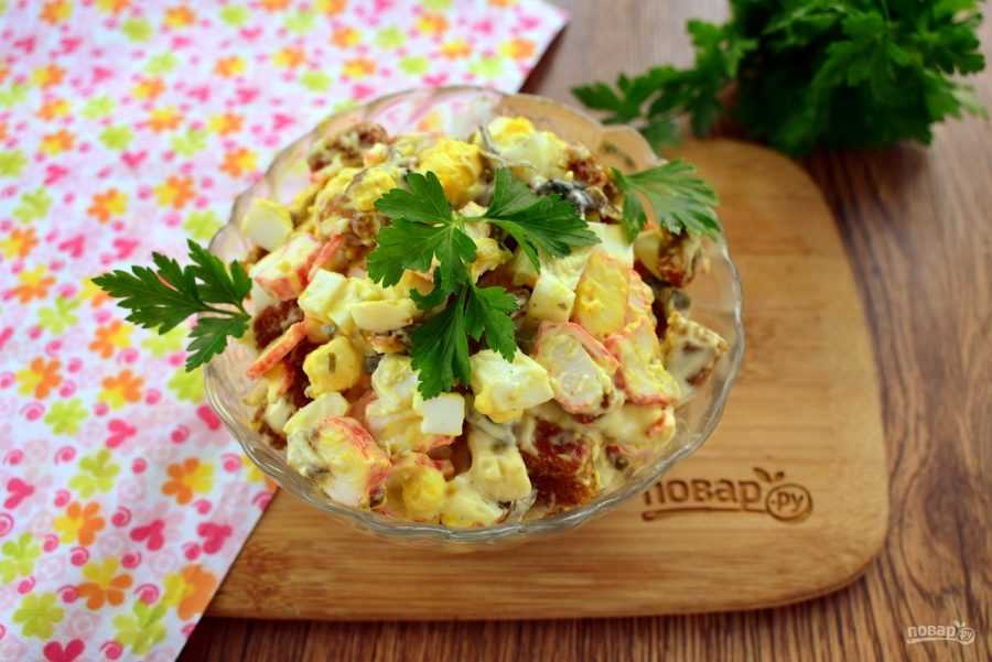 Салат с куриной грудкой, крабовыми палочками и чипсами