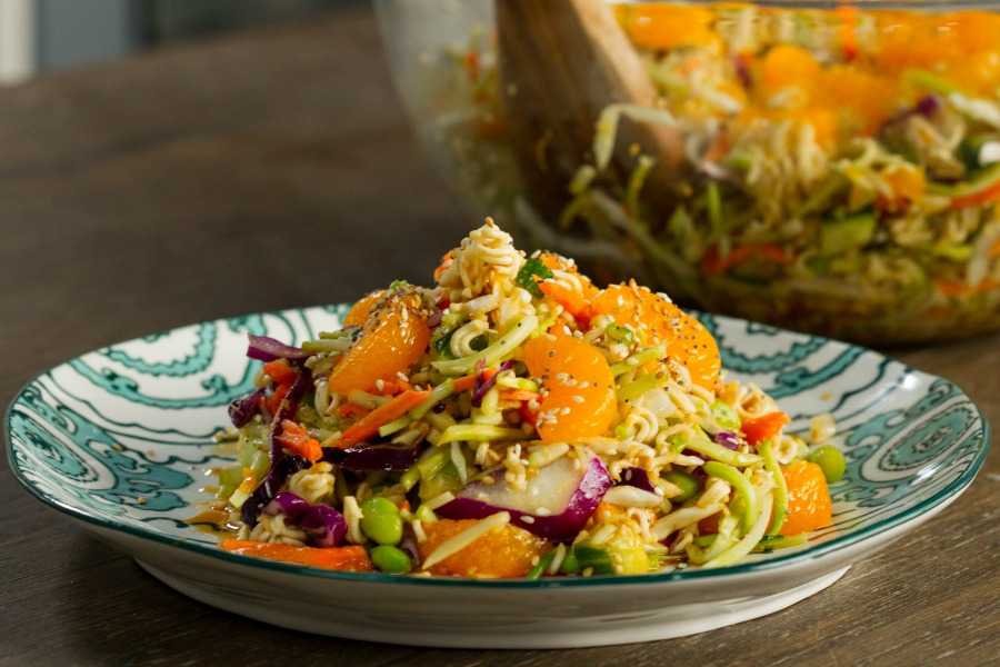 Этот рецепт с фото салата с соусом терияки предлагает выполнить такие шаги: