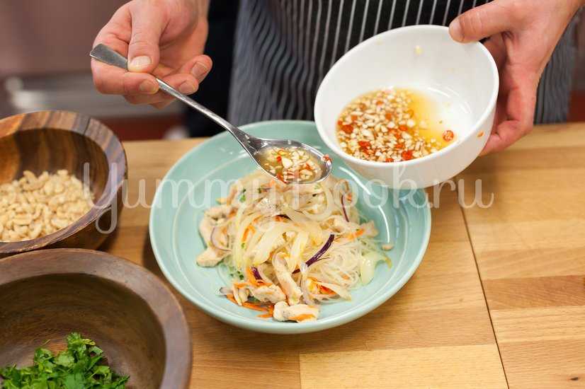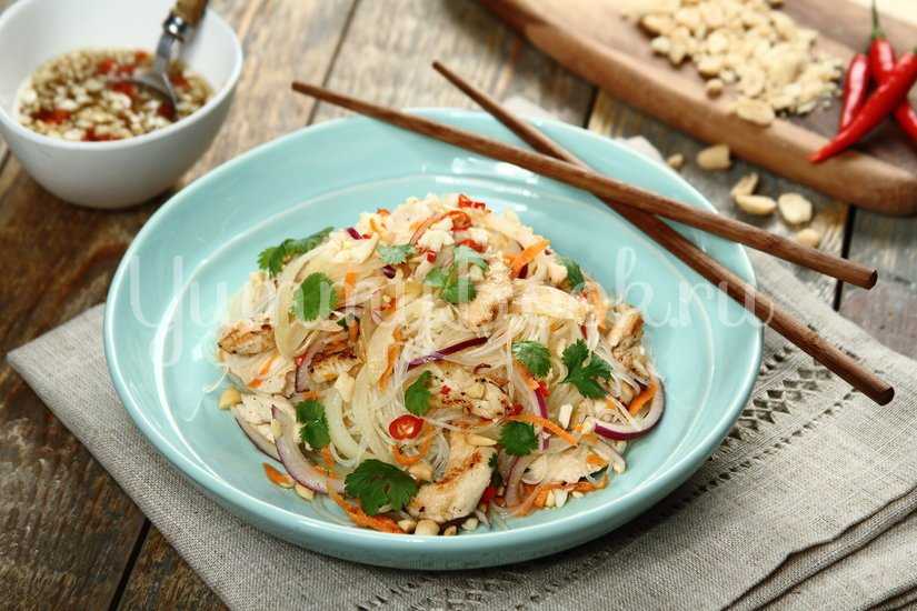 Салат с курицей и рисовой лапшой по-тайски