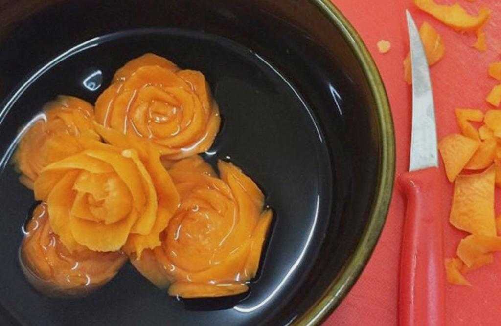 А вы знаете, как красиво нарезать морковь? Корнеплод достаточно тверд, чтобы служить материалом для нехитрых «скульптурных форм».